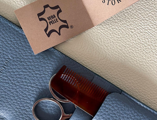 Its small size allows you to store it comfortably in your backpack or put it in a pocket. The Sublime 3-piece set, hand-packed in genuine leather, stands out for the refinement of its color and the softness of the leather. Inside you will find three products: a pair of scissors and tweezers made of stainless steel in Italy and a comb, in tortoiseshell effect cellulose acetate, finished and polished by hand by our craftsmen.